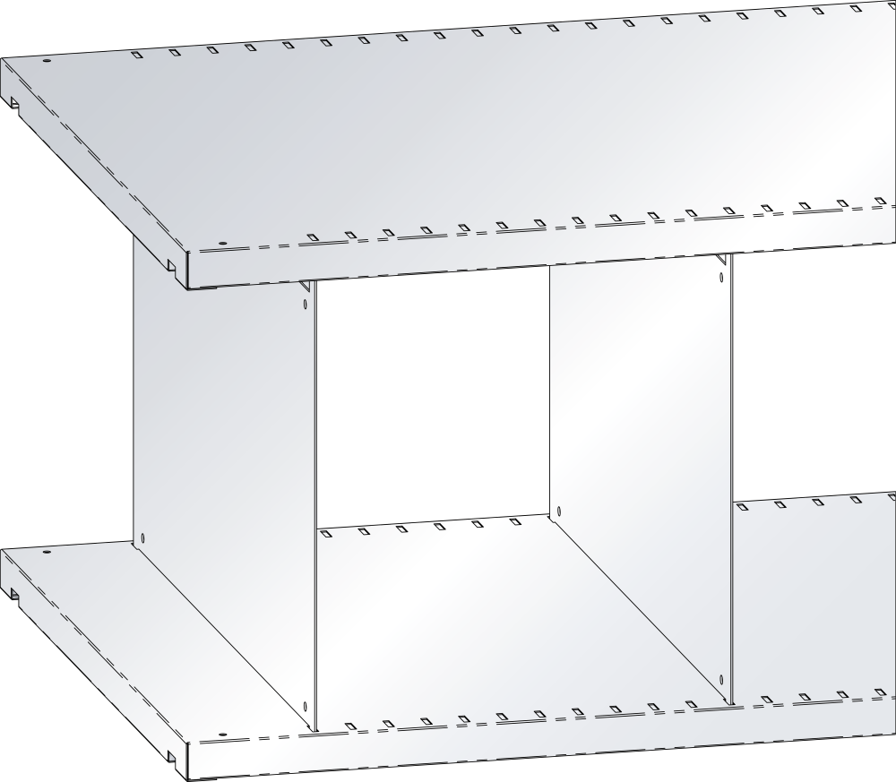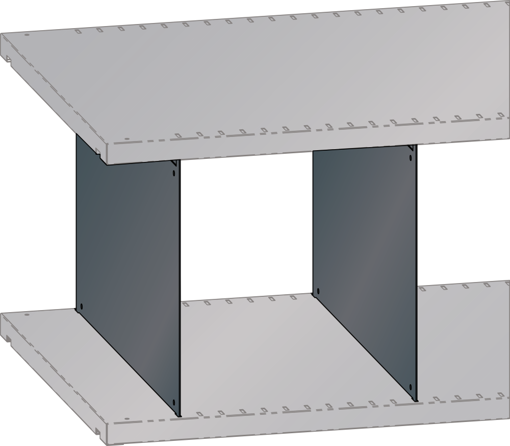 Fachtrennwände: Zur Unterteilung von geschlitzten Fachböden. Die Höhe der Fachtrennwände, oben und unten gesteckt, ist von der Fachbodendistanz abhängig. Fachbodenabstand im Licht = Höhe der Fachtrennwände. Ausführung: Stahlblech. Farbe: gemäss Farbkarte oder verzinkt. Verkaufseinheit: 10 Stk.