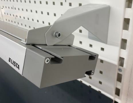 Leuchtenhalter: Direktmontage der Beleuchtung an Lochrückwand. Für die Montage der LISTA Arbeitsplatzbeleuchtungen Comfort und Comfort + (Längen 450, 900 1500 mm). Schwenkbar: 2x 15°. Farbe: schwarz bzw. anthrazit für ESD Ausführung.