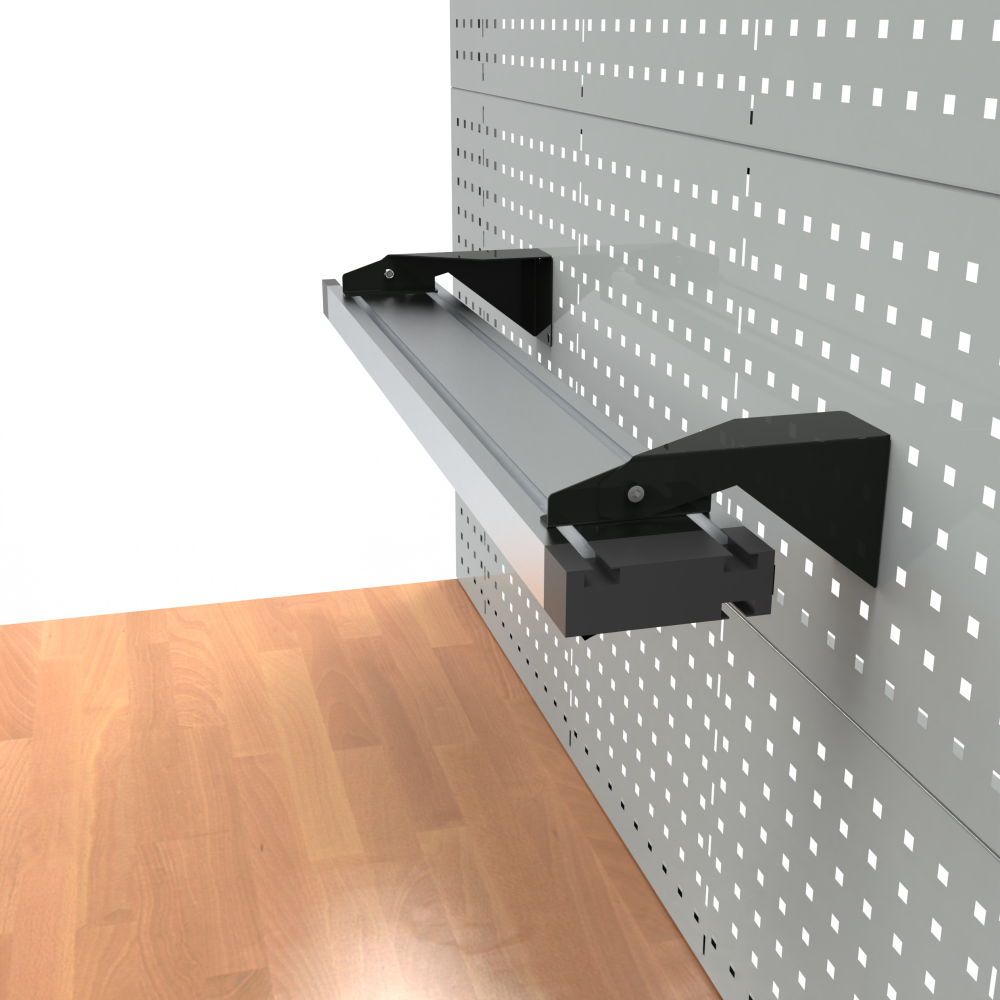 Leuchtenhalter: Direktmontage der Beleuchtung an Lochrückwand. Für die Montage der LISTA Arbeitsplatzbeleuchtungen Comfort und Comfort + (Längen 450, 900 1500 mm). Schwenkbar: 2x 15°. Farbe: schwarz bzw. anthrazit für ESD Ausführung.