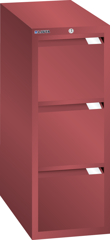 Registraturschrank F763 (BxTxH) 435x595x1075mm 3 Schubladen, ohne Schliessung, Rubinrot RAL 3003