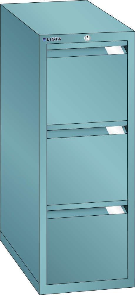 Registraturschrank F763 (BxTxH) 435x595x1075mm 3 Schubladen, ohne Schliessung, Türkisblau RAL 5018
