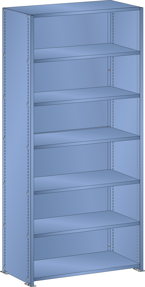 Vollblech-Seitenwand, Max. Feldlast 1000 kg: Standard mit Dreieck-Abkantung vorne. Schlitzteilung 25 mm, zum Einhängen der Bodenträger. Inklusive Fussplatten-Set, verzinkt. Ausführung: Stahlblech. Farbe: gemäss Farbkarte oder verzinkt.