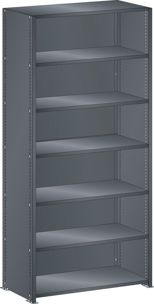 durch standardisierte Abmessungen für alle LISTA Universalregale und individuelle Konfigurationsmöglichkeiten. Die Bauweisen Regalstützen und Seitenwände können kombiniert werden.