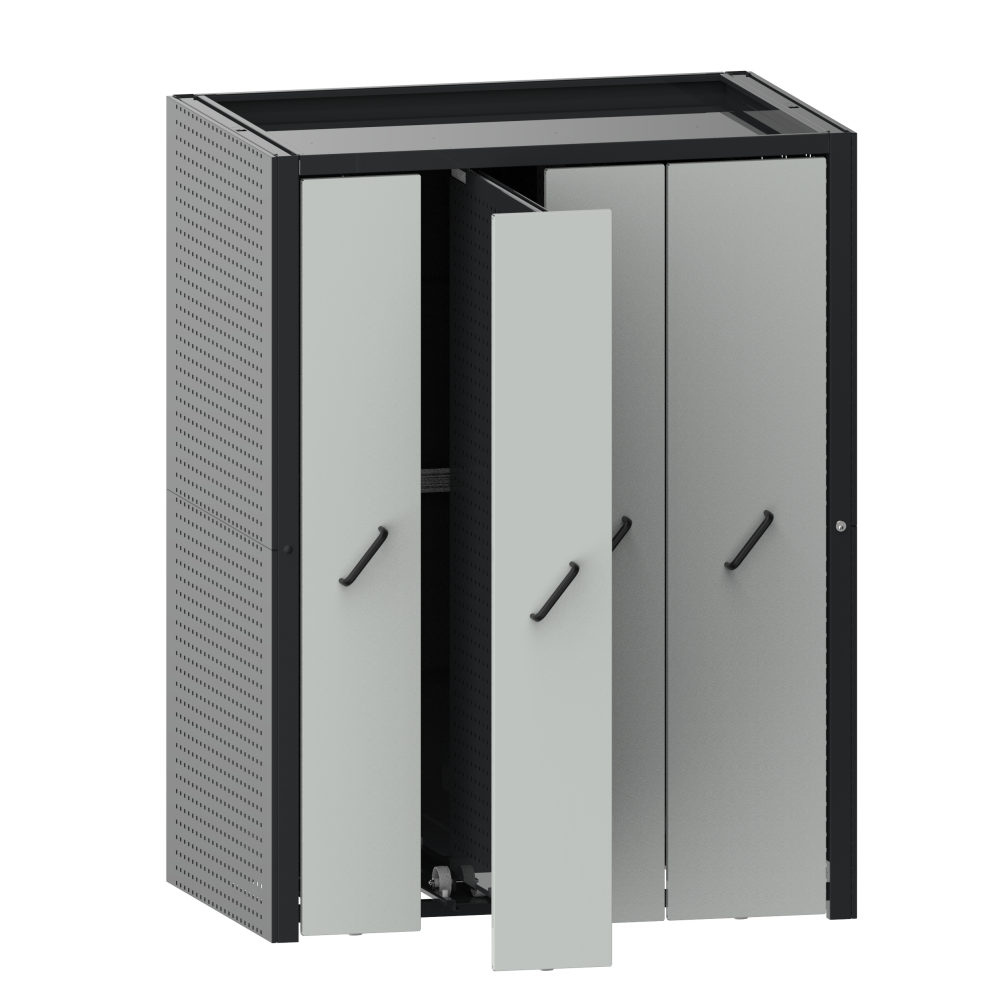 Vertikalauszugschrank Grundfeld bodengeführt mit Frontblenden (BxTxH) 1484x1000x1950mm 4 Auszüge (200kg) mit Lochwände KEY Lock Anthrazitgrau RAL 7016 / Hellgrau NCS S 2000-N
