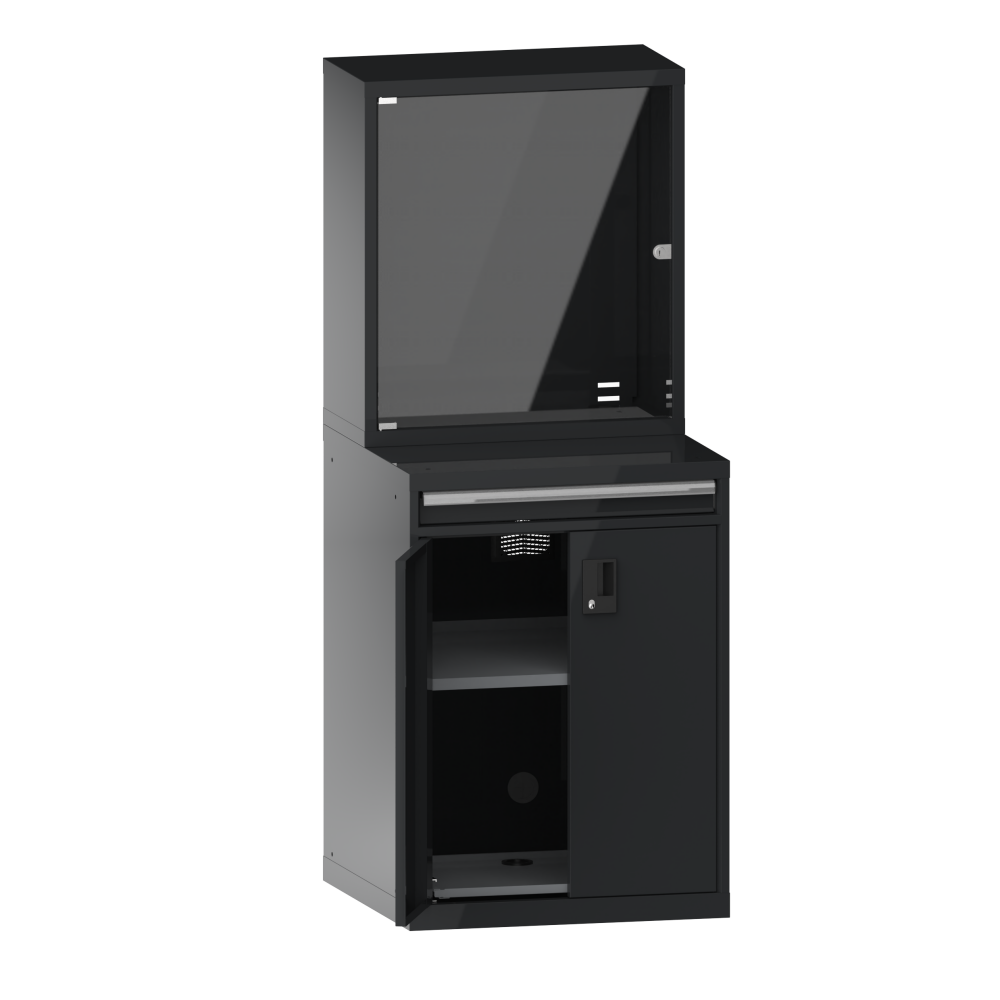 Computer cabinets: Computers and the corresponding hardware and software must be protected from dust, dirt and unauthorised access on the shop floor. The LISTA computer cabinet provides a safe and proven solution that fulfils this requirement.