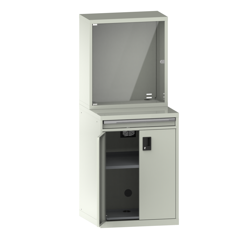 Computer cabinets: Computers and the corresponding hardware and software must be protected from dust, dirt and unauthorised access on the shop floor. The LISTA computer cabinet provides a safe and proven solution that fulfils this requirement.