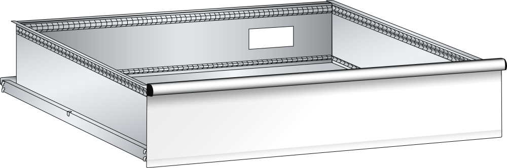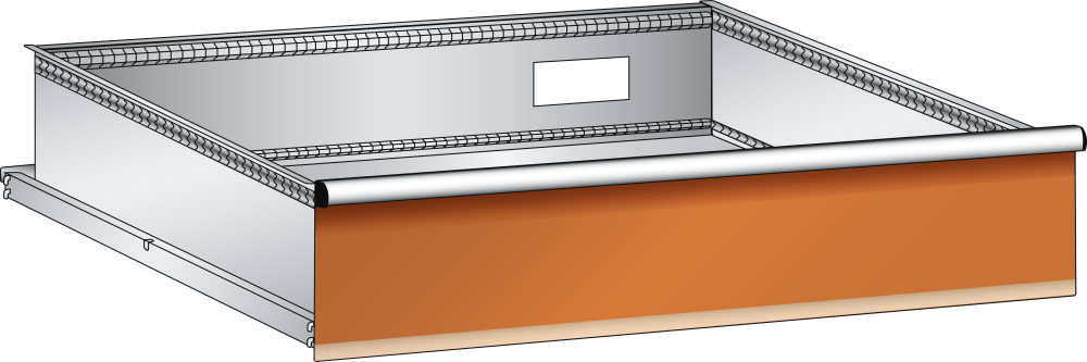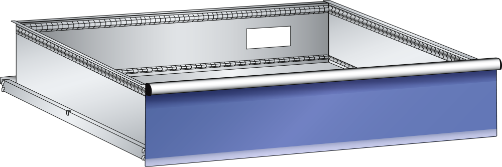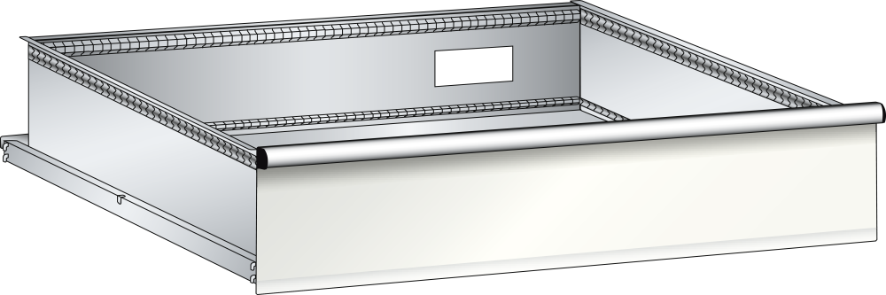 Drawer: With cut-out hole incl. connecting cable 3m. For assembly: 1 x power module. Drawers with different front heights can be incorporated into the same cabinet housing in any order. The drawer walls are all equipped internally with a slotted grid in units (E) of 17 mm, which means each can be subdivided as desired.