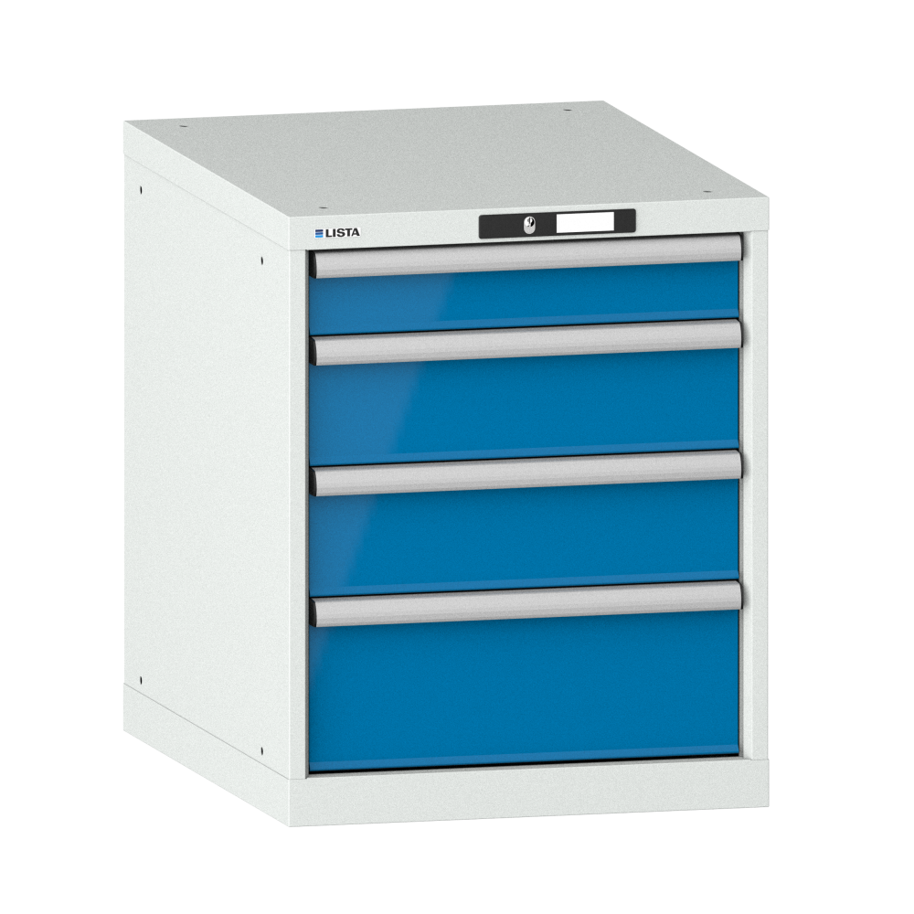 Drawer cabinet 27x36E (WxDxH) 564x725x700mm 4 drawers (1x100/2x150/1x200) 75kg KEY Lock Light grey RAL 7035 / Light blue RAL 5012