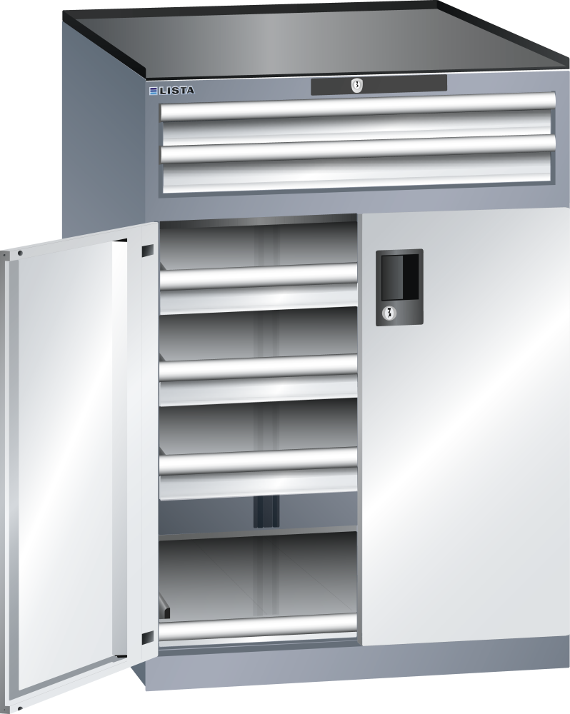 RFID Lock: In addition to the CODE Lock, the LISTA RFID Lock enables opening and locking via standard radio-frequency identification (RFID). It consists of a transponder in the lock and standard mobile RFID badges/cards/tags. Manual opening/locking via RFID badge or number code.