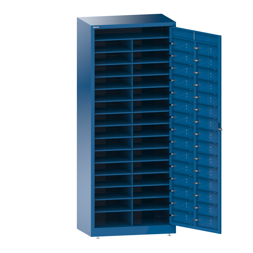 Linen cabinet (WxDxH) 802x500x1950mm 2x15 compartments incl. 4 adjustable feet and storage compartment on top KEY Lock Capri blue RAL 5019
