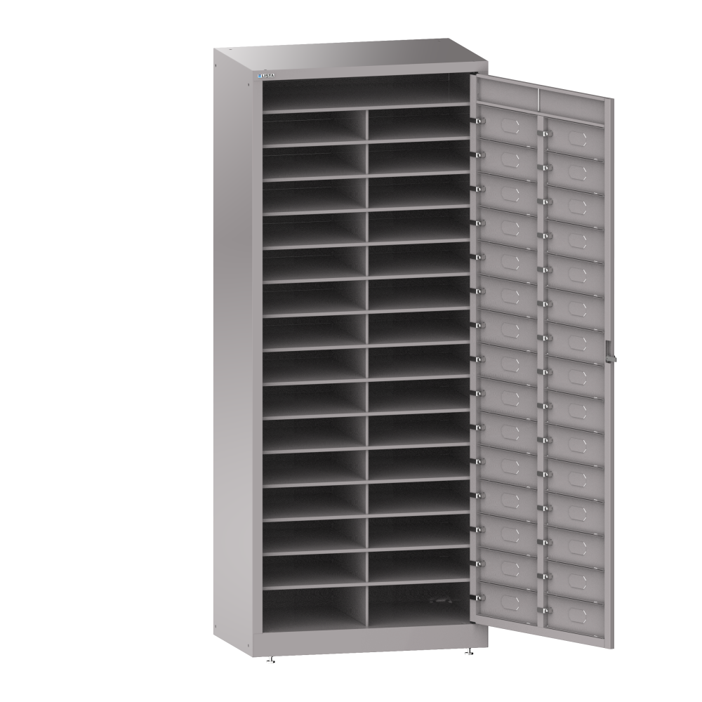 Main URL: https://configurator.lista.com/en/Linen-cabinet-WxDxH-802x500x1950mm-2x15-compartments-incl-4-adjustable-feet-and-storage-compartment-on-top-KEY-Lock-Grey-aluminium-RAL-9007-3526167.html