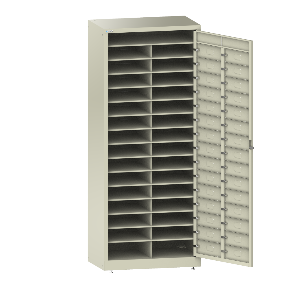 Linen cabinet (WxDxH) 802x500x1950mm 2x15 compartments incl. 4 adjustable feet and storage compartment on top KEY Lock Pebble grey RAL 7032