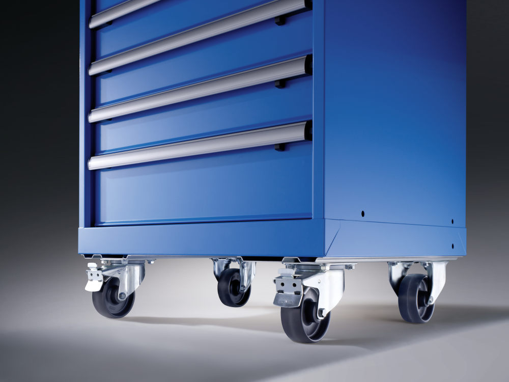 For safety reasons, mobile drawer cabinets must be fitted with a push bar and a drawer safety catch.