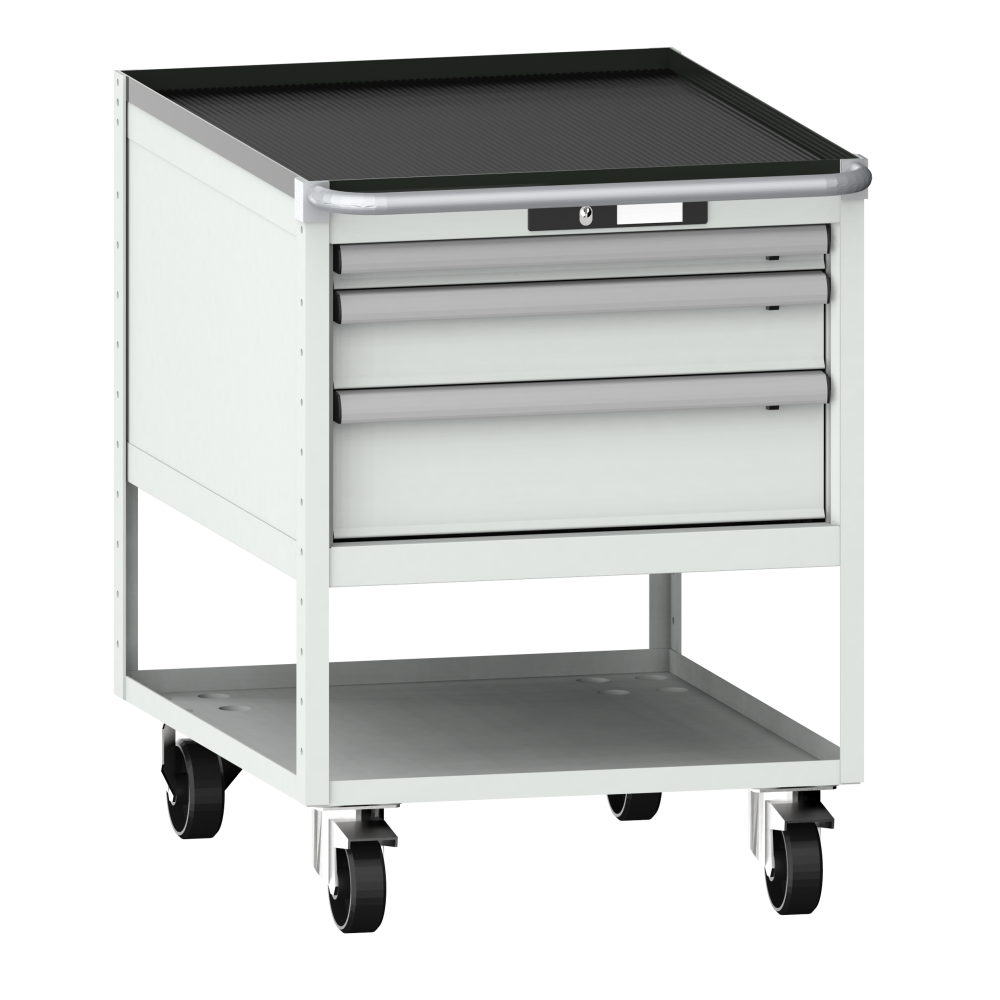 1 raised edge on 4 sides incl. ribbed mat, 1 push-bar, 1 set of support brackets (upper), 1 pair castor holders with nylon castors Ø 100 mm