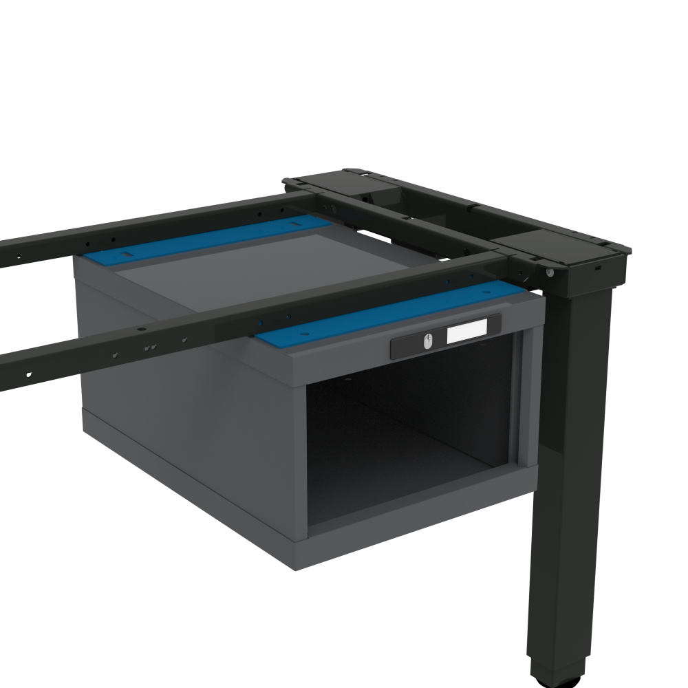 Si se utiliza el travesaño de bastidor Quattro/Duo o travesaño encimera Solo, es necesario un adaptador colgante al montar un armario de cajones colgado. El mismo adaptador colgante se puede utilizar tanto para la profundidad del armario 27E como para la 36E. Diseñado para la profundidad de módulo de pata de puesto de trabajo 725 mm. Modelo: chapa de acero. Color: Negro NCS S 9000-N o Silver metalizado RAL 9006-M y gris antracita RAL 7016 para ESD.
