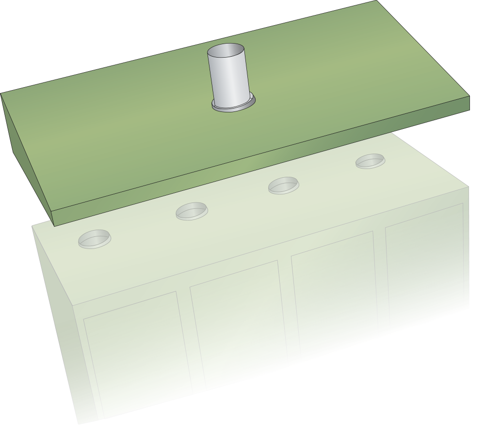 Conducto de aire inclinado (AxPxA) 600x500x50/200mm Completo Verde reseda RAL 6011