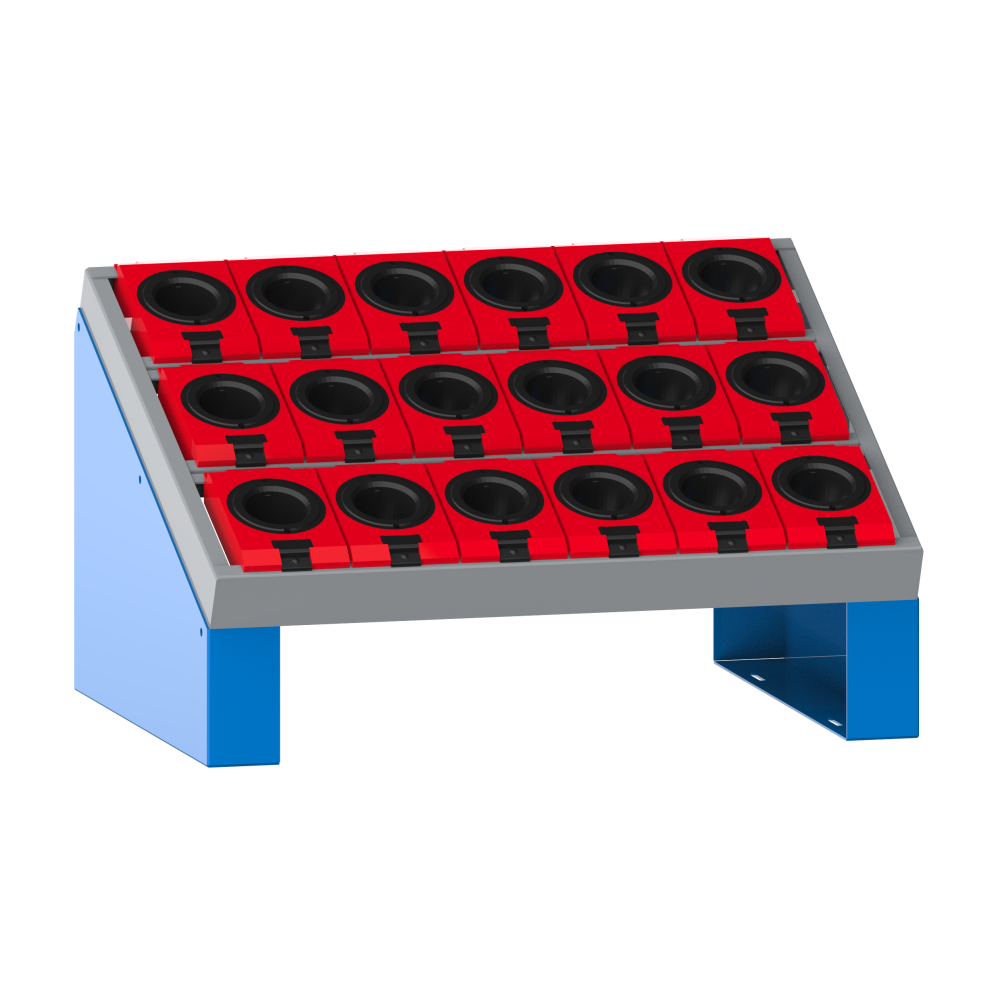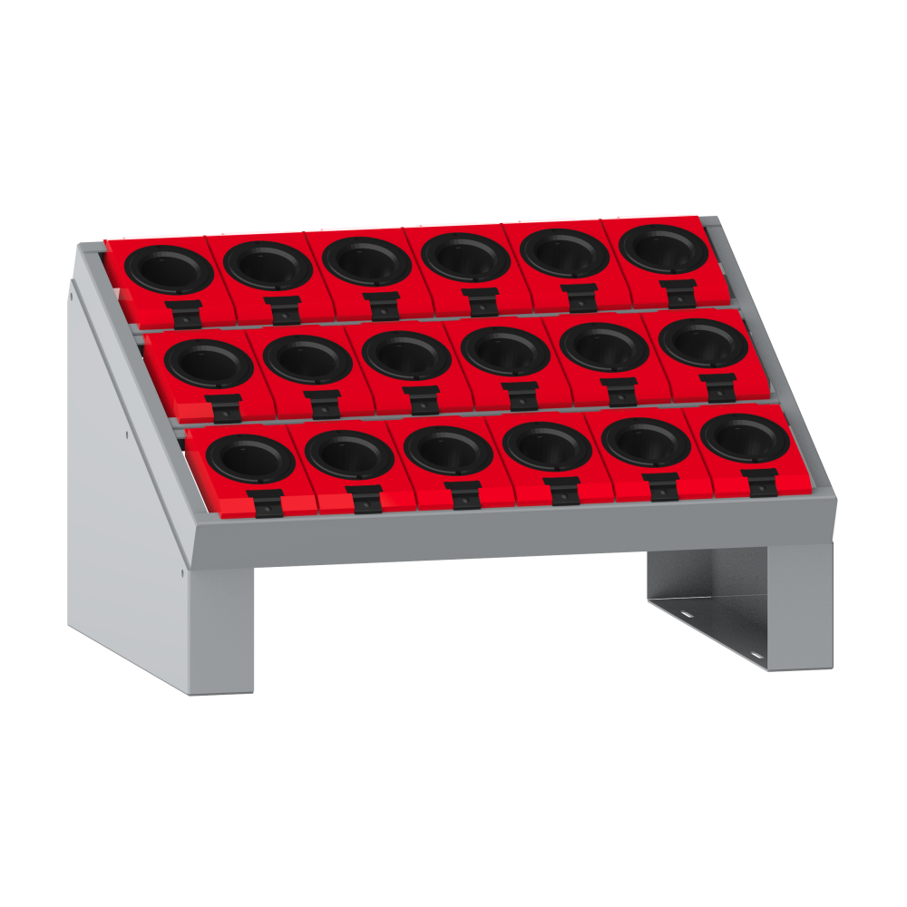 Support de table NC avec cadre d’insertion 36x27E (LxPxH) 588x413x345mm 24 porte-outils HSK 50 A+C+E/63 B+D+F Rouge feu RAL 3000