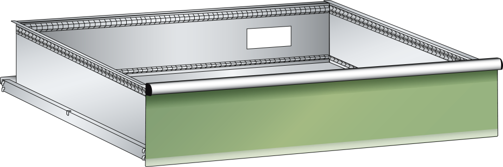 Tiroir: Tiroir perforé avec câble de liaison 3m. Pour l’équipement: 1 module électrique. Les tiroirs des hauteurs frontales les plus diverses peuvent être montés dans le même bâti d'armoire dans n'importe quel ordre. Les parois des tiroirs sont dotées à l'intérieur des 4 côtés d'une trame des fentes par unités (E) de 17 mm, ce qui permet une subdivision personnalisée.