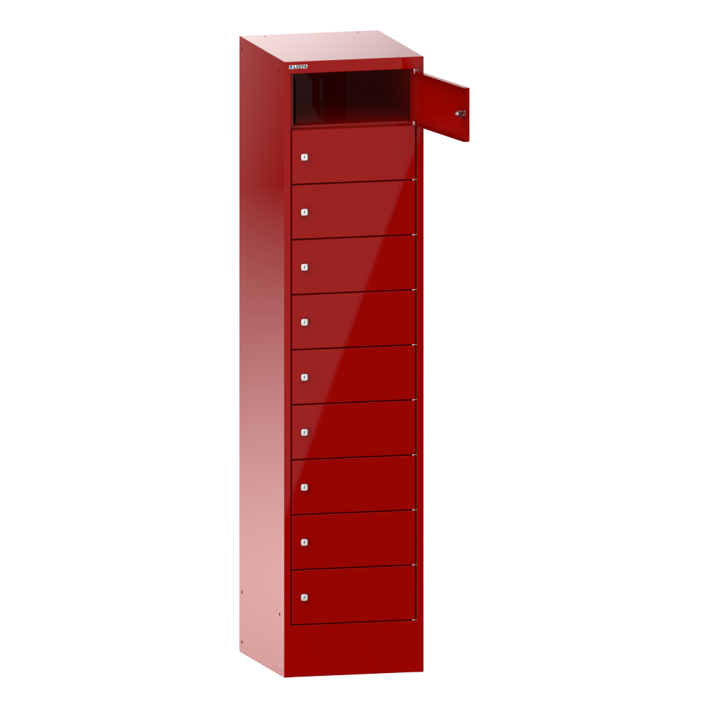 Armadi per laptop: porte in lamiera piena per una maggiore stabilità e protezione antieffrazione, ripiegate su tutti i lati, porte a battente incernierate a destra. Bordo d'urto rivestito con profilo in gomma fonoassorbente. Angolo di apertura di circa 110 gradi. Sistema di chiusura passepartout: KEY Lock è predisposto di serie per l'utilizzo come sistema di chiusura passepartout, cioè con una cosiddetta chiave passepartout tutti i vani possono essere aperti nonostante la diversa chiusura.