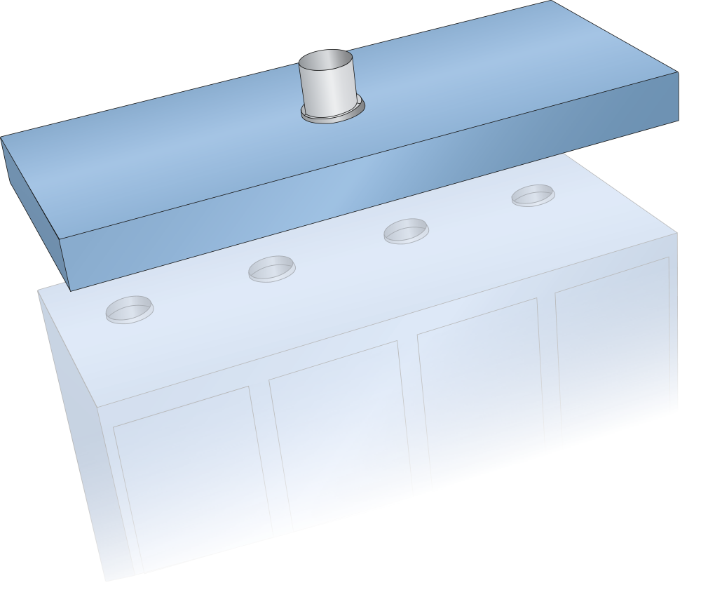 Canale d'aerazione diritto (LxPxA) 800x500x100mm Fila pezzo iniziale a sinistra Aperl celeste RAL 5015