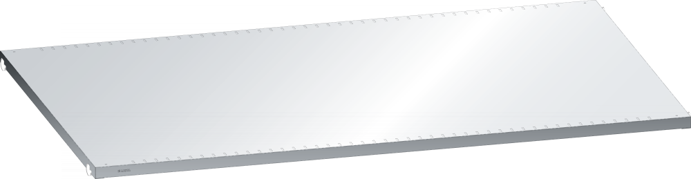 Ripiani lisci o fessurati, carico scomparto max. 80, 160, 220, 280 e 400 kg: supporti inclusi. Spessore ripiano 25 mm. Versione: lamiera d'acciaio. Colore: come da carta colori o zincata.